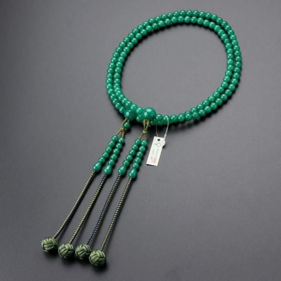 真言宗、男性用の正式なお数珠でございます。素材は、厳選した上質の印度翡翠でございます。写真では少し暗く写ってしまっておりますが、落ち着きの中にも鮮やかさのある美しい印度翡翠でございます。房は、もちろん正絹でございます。丈夫で扱い易く、型崩れを起こさない、小田巻梵天房を採用させて頂きました。お色目は、美心専用特別配色となっております。数珠専門店として、品質・デザインとも最大限にこだわらせて頂き、最高の仕上がりをご体感して頂けます逸品をご準備させて頂く事ができました。